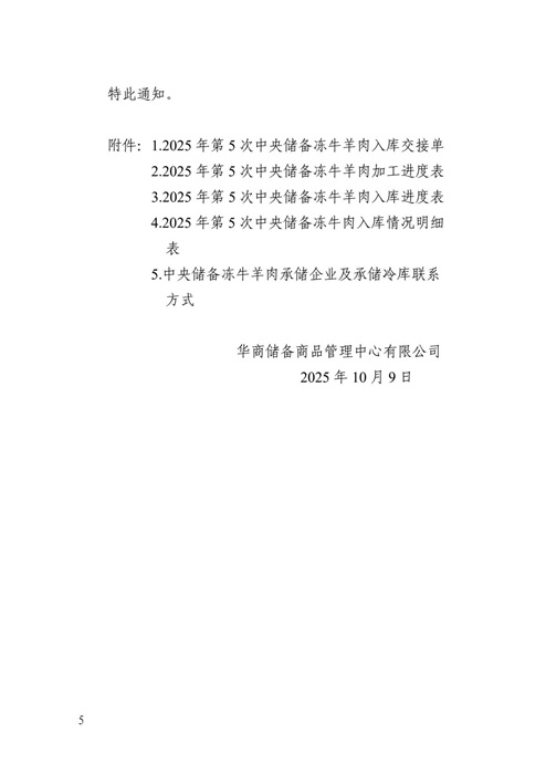 附件3:2025年第5次中央儲備凍牛羊肉入庫進度表