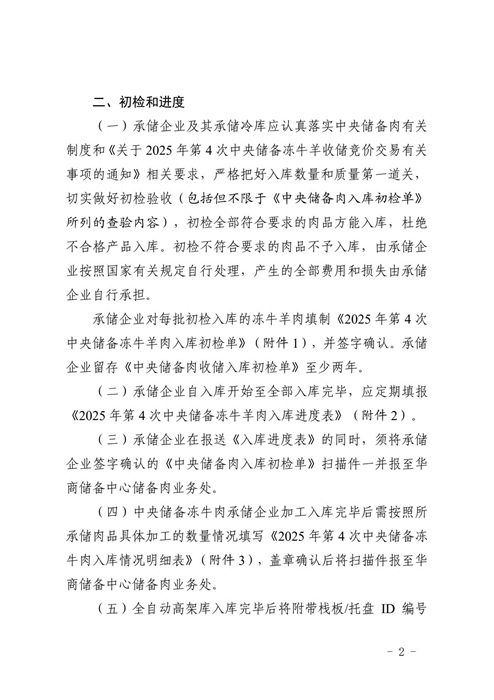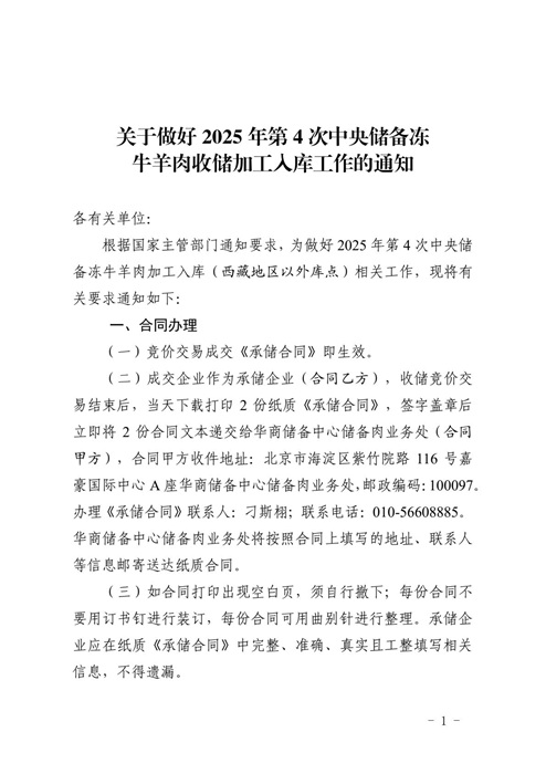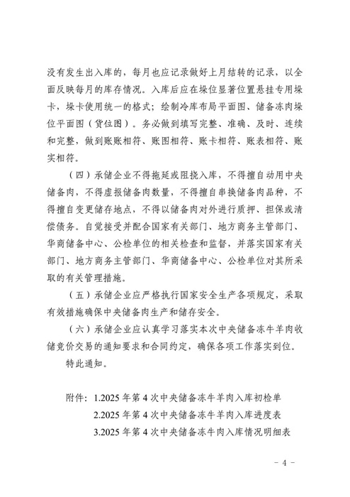 關于做好2025年第4次中央儲備凍牛羊肉收儲加工入庫工作的通知
